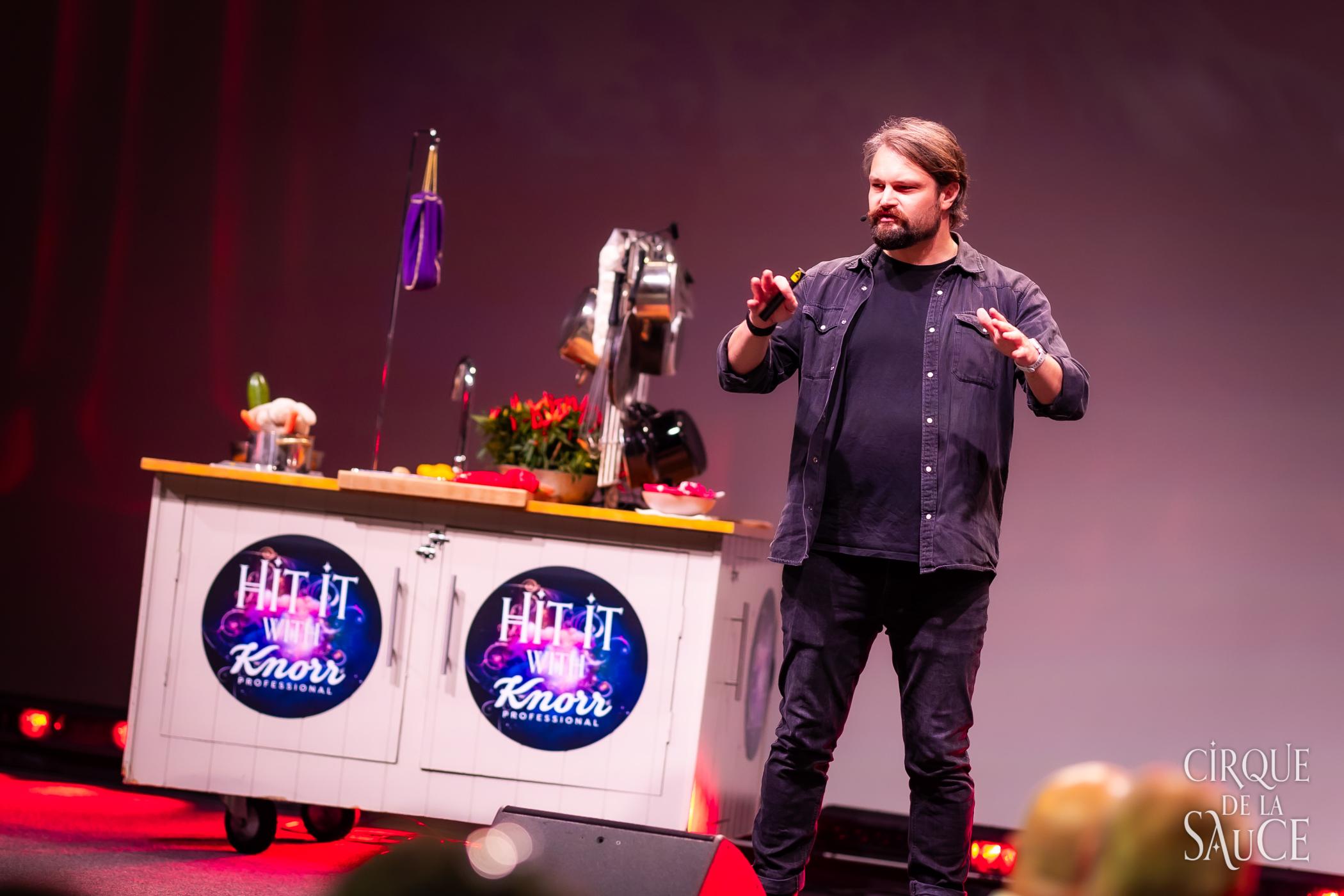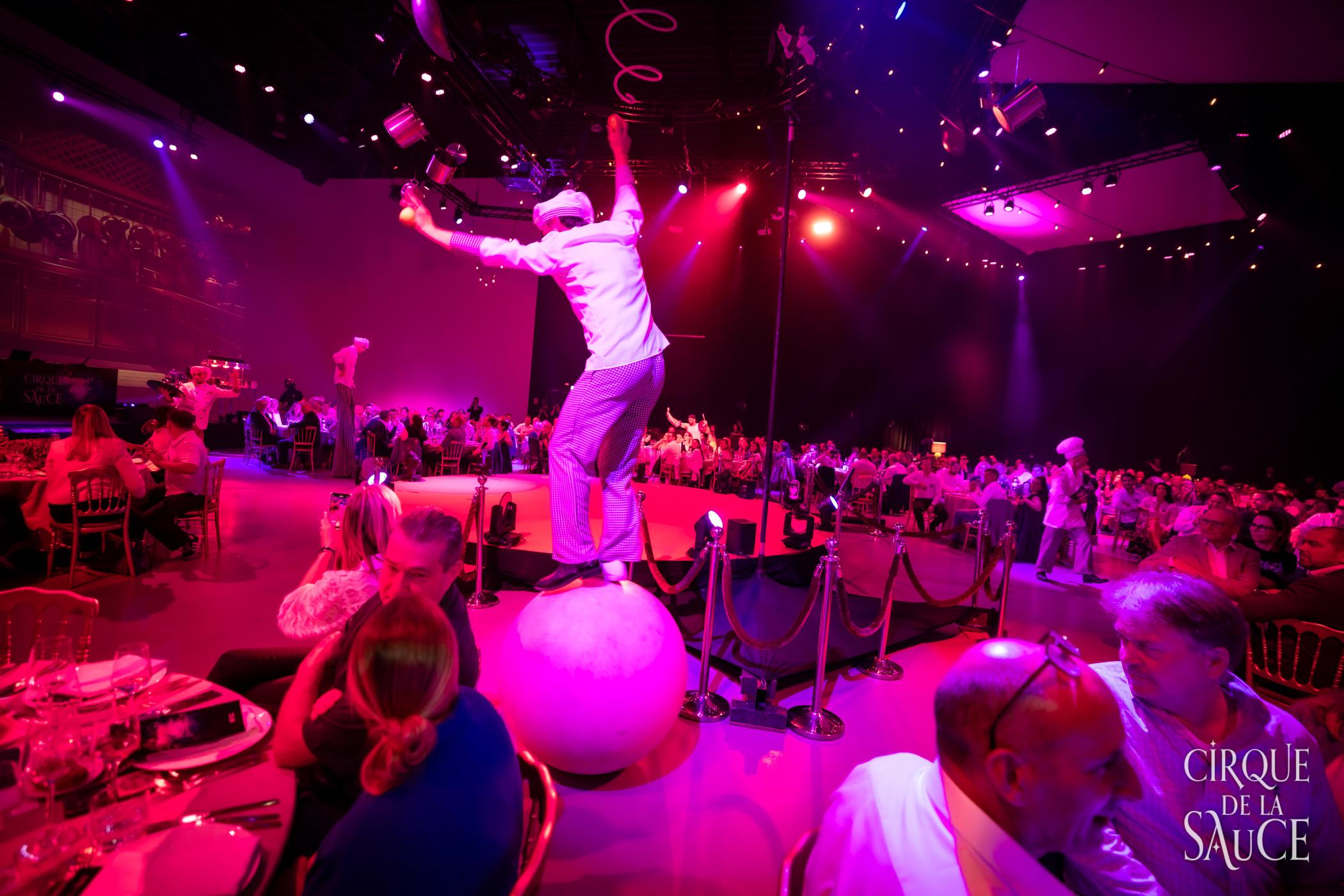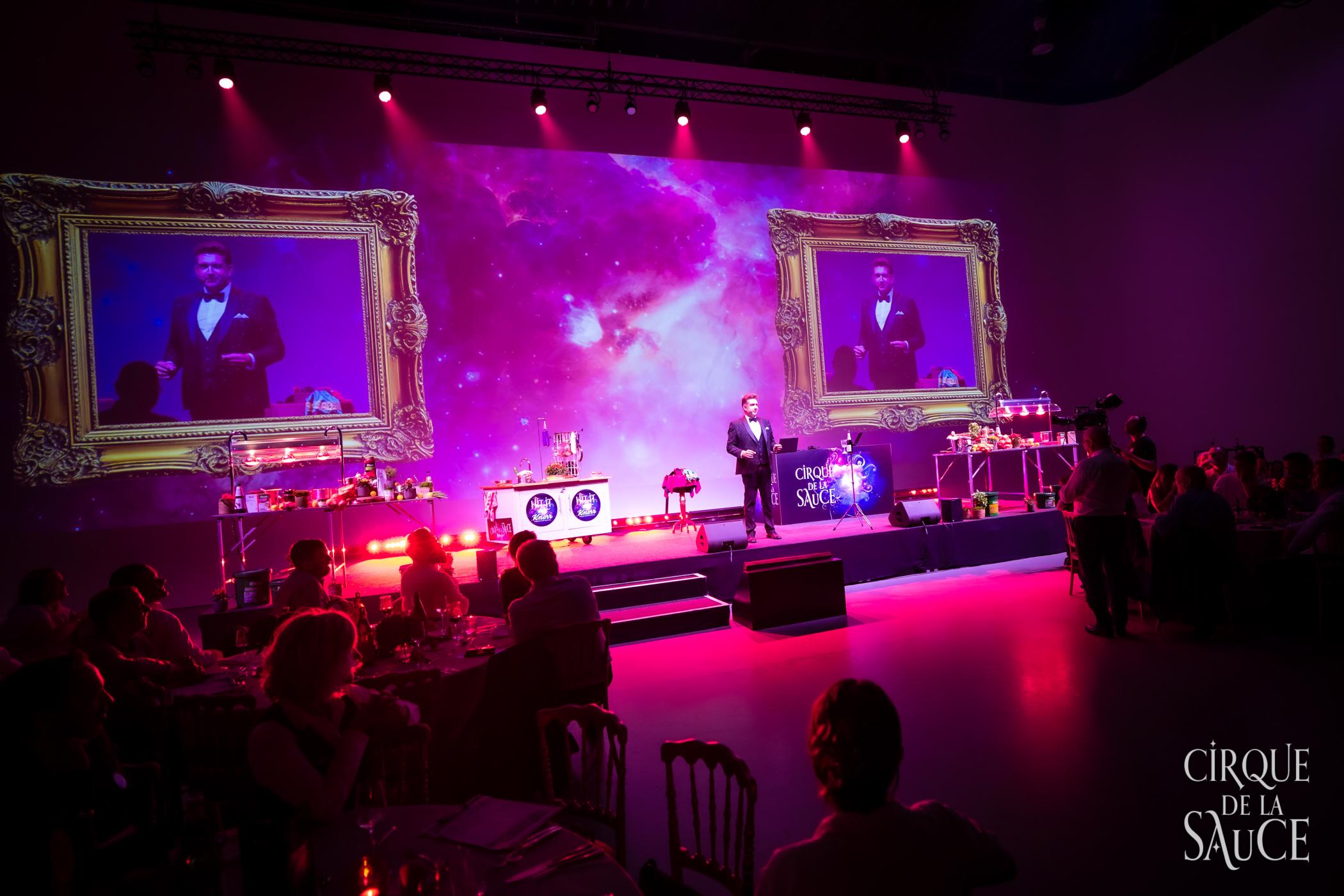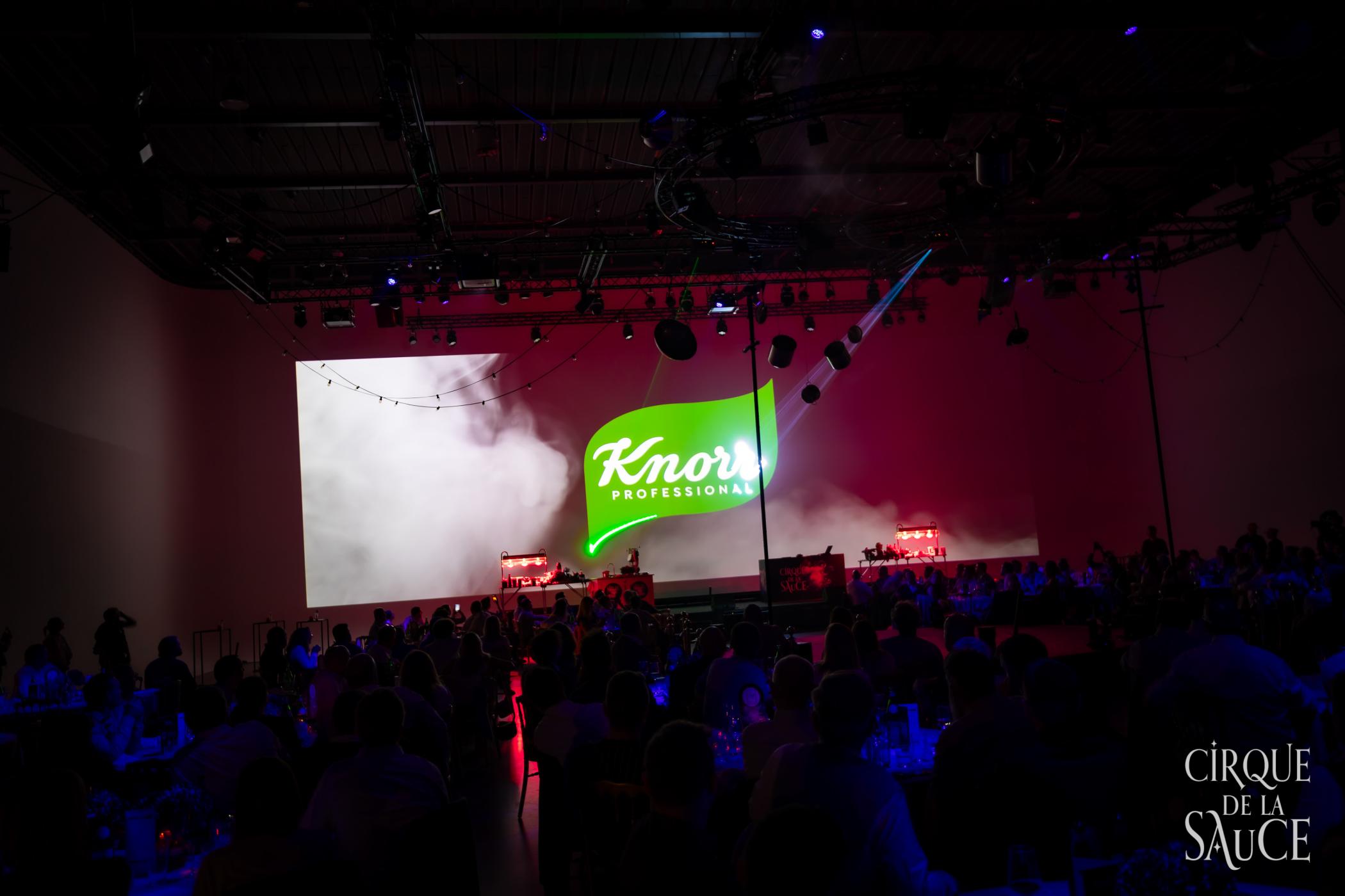 For Unilever Food Solutions Belgium, we created Cirque de la Sauce: a theatrical dinner show in Brussels designed to launch the new packaging and expanded Knorr Professional Garde d'Or sauce range. Through a strong mix of foodservice marketing, B2B communication and premium brand experience, we brought together strategic buyers and decision-makers around innovation, Future Menus and brand storytelling.